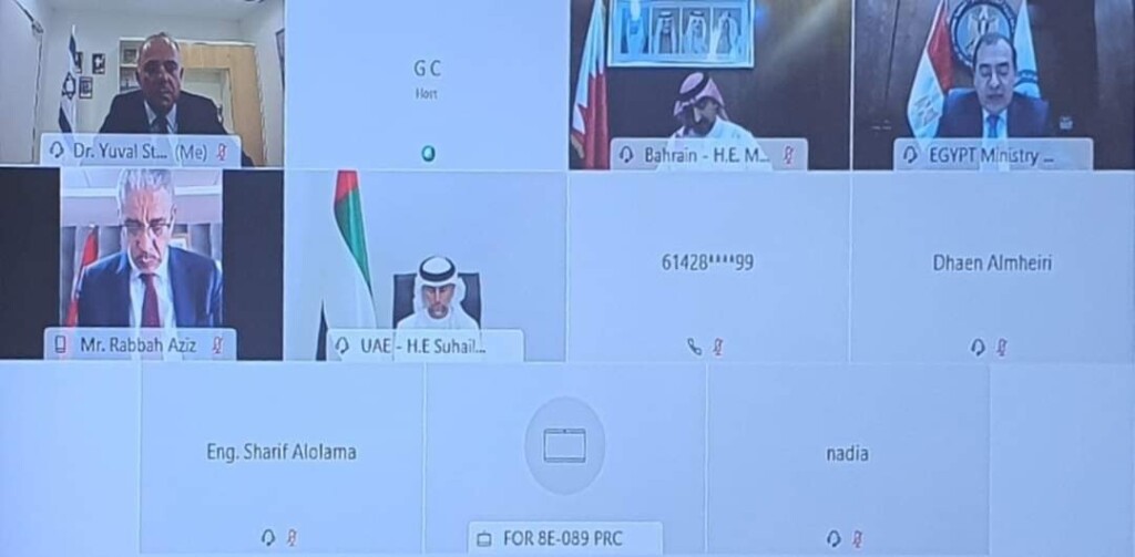 قالت إسرائيل بالعربية، إن وزراء الطاقة من إسرائيل ومصر والإمارات والمغرب والسودان والبحرين أجروا، اتصالاً مرئياً حول التعاون في شؤون النفط والغاز والطاقة المتجددة والبحث والتطوير.