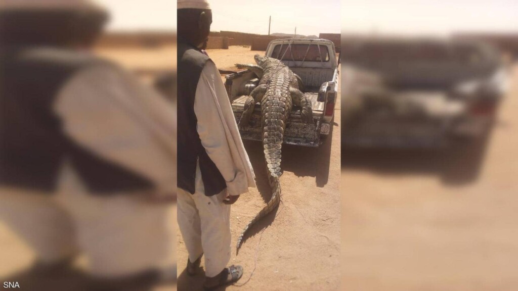 بعد مطاردة استمرت 21 يوما تمكن المزارع السوداني محمد فضل المولى من اصطياد تمساح ضخم طوله 5 أمتار وعرضه نحو 50 سنتيمترا.