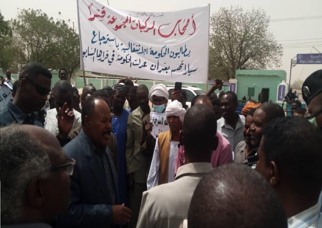 طالب أصحاب مركبات “الدفع الرباعي” التى تمت مصادرتها من قبل نظام الرئيس المخلوع عمر البشير فى ولاية جنوب دارفور، بإسترجاعها أو دفع قيمتها الحالية، جاء ذلك خلال وقفة إحتجاجية اليوم امام مكتب والي الولاية.