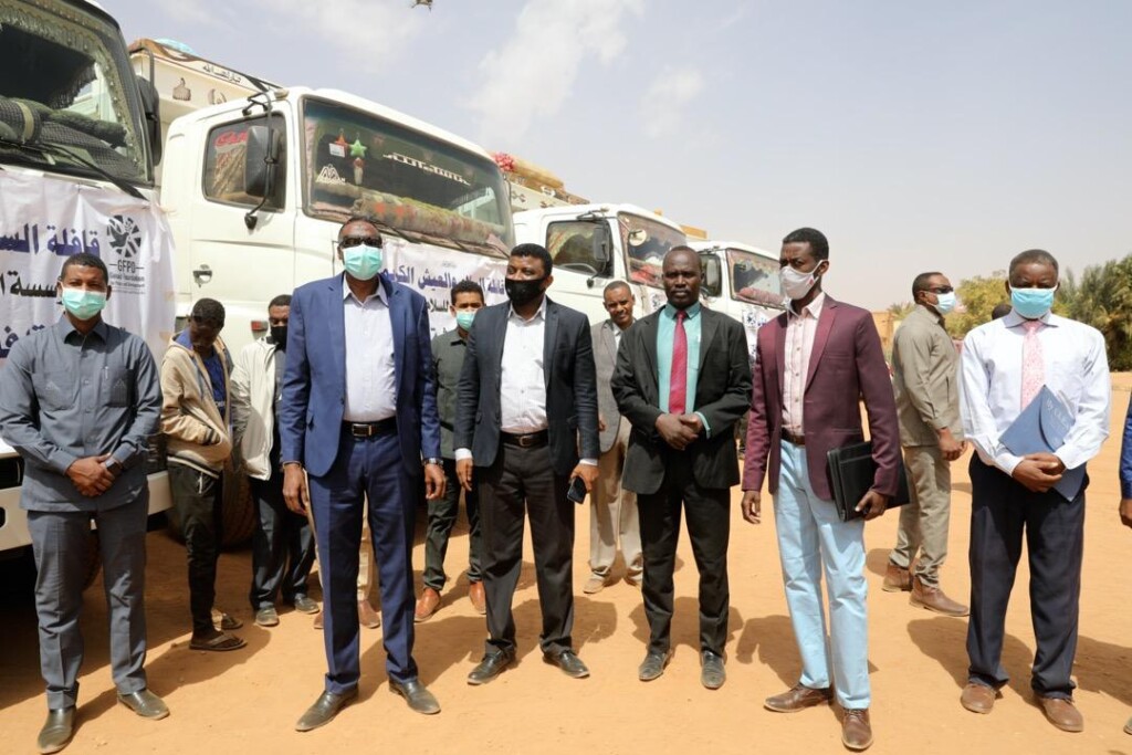 دشنت قوات الدعم السريع اليوم بالتعاون مع مفوضية العون الانساني بوزارة الرعاية الاجتماعية قافلة السلام والعيش الكريم المتوجهة لغرب دارفور لمساعدة المتضررين من أحداث الجنينة الاخيرة ، واكد الفريق عبدالرحيم دقلو عضو شركاء الفترة الانتقالية تاني قوات الدعم السريع ان القافلة تعتبر أول عمل لمؤسسة الجنيد للسلام والتنمية وستتوجه مباشرة الى غرب دارفور الجنينة لمساعدة المتضررين من الأحداث المؤسفة التى شهدتها الجنينة وستوزع على النازحين والرحل والمتضررين وأسر الضحايا من كافة الأطراف .