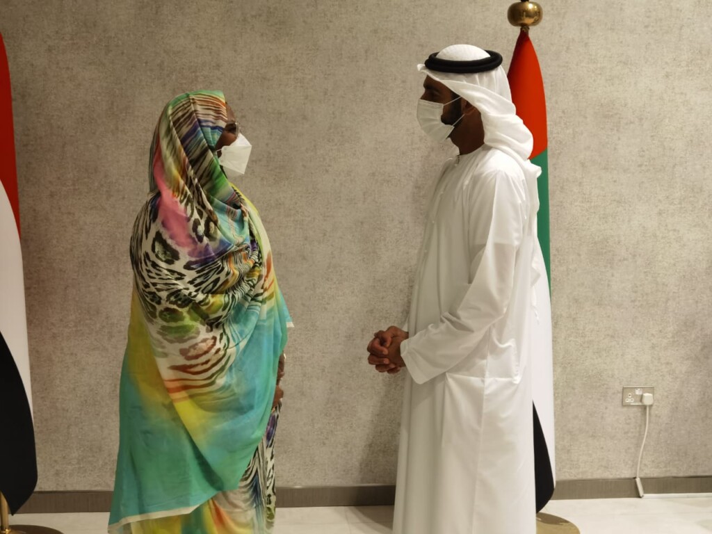 وكان في استقبالها بحسب صحيفة السوداني، سمو الشيخ شخبوط بن نهيان ال نهيان وزير الدولة بوزارة الخارجية بدولة الامارات، بمطار دبي في استهلال زيارتها الرسمية للامارات بدعوة من نظيرها الاماراتي.