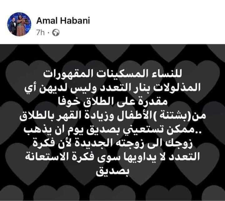 وبحسب ما نقلت محررة موقع النيلين فقد كتبت هباني في تدوينتها التي دافعت من خلالها عن النساء المقهورات ونالت بها سخط وغضب الأسافير (للنساء المسكينات المقهورات المذلولات بنار التعدد وليس لديهن أي مقدرة على الطلاق خوفا من(بشتنة )الأطفال وزيادة القهر بالطلاق ..ممكن تستعيني بصديق يوم ان يذهب زوجك الى زوجته الجديدة لأن فكرة التعدد لا يداويها سوى فكرة الاستعانة بصديق).