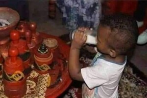 تداول رواد مواقع التواصل الاجتماعي صورة لطفل وهو يقوم بشرب كوب (حليب الجرتق) قبل بدء مراسم (جرتق)العروسين.