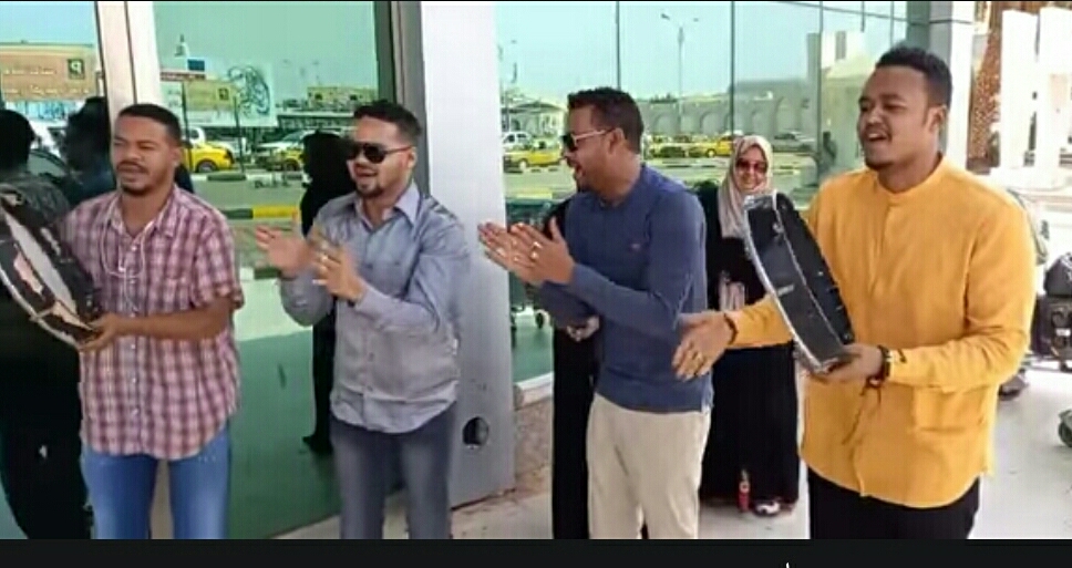 تداول رواد مواقع التواصل الإجتماعي مقطع فيديو ظهر من خلال مجموعة من الأشخاص المتواجدون بمطار الخرطوم الدولي يقومون بمدح الرسول صلي الله عليه وسلم .