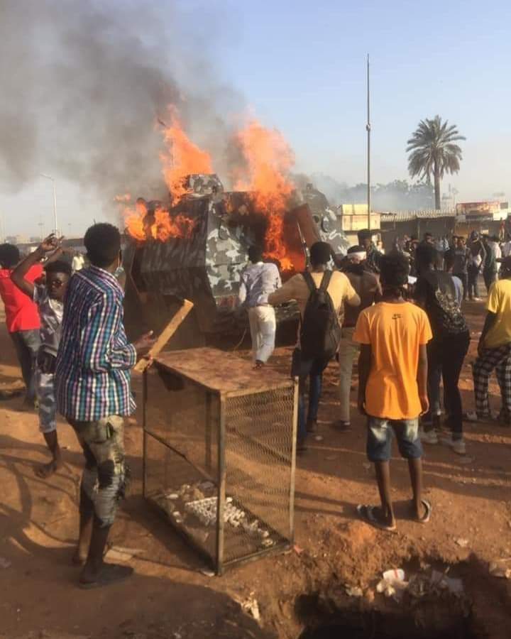 أوضحت الشرطة:إنه أثناء تعامُل قوة العمليات بالشرطة مع بعض مُثيري الشغب بالقرب من ميدان جاكسون الخميس ، تعرّضت إحدى مركبات الشرطة لحريق جزئي تمّت السيطرة عليه إثر إلقاء عبوة ملتوف، كما أن هنالك بعض الإصابات وسط أفراد القوة، ولاتزال قوة العمليات تتعامل معهم. وفق صحيفة السوداني