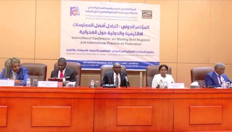 وخاطب التعايشي بقاعة الصداقة الاحد الجلسة الافتتاحية للمؤتمر الدولي لتبادل أفضل الممارسات الإقليمية والدولية حول الفيدرالية، الذي نظمه المركز الإقليمي للتدريب وتنمية المجتمع المدني، بالشراكة مع مبادرة المجتمع المفتوح لشرق أفريقيا، بحضور وزيرة الحكم الاتحادي بثينة إبراهيم دينار ووزير العدل نصر الدين عبد الباري، وتستمر جلساته أربعة أيام.