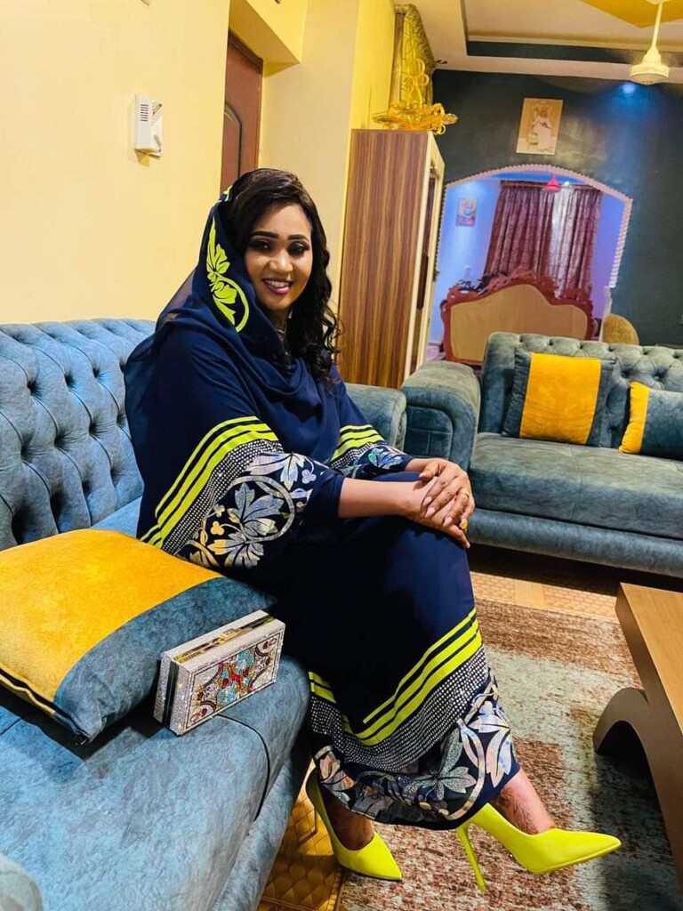 وبدأت الجبلية في عدة صور نشرتها، بثوب سوداني أنيق بمنزلها وهي تستعرض الهدية المغلفة داخل صندوق رائع مُبدية إعجابها بها.