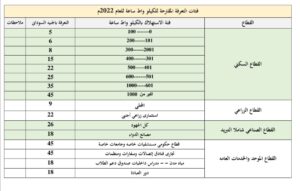 عليه تمت مراجعة فئات تعرفة الكهرباء من وزارتي المالية والتخطيط الاقتصادى والطاقة والنفط وتعديلها ابتداء من اليوم ٢٤ يناير ٢٠٢٢م الساعة الثامنة مساء يالتوقيت المحلى لتكون وفقا للجدول المرفق.