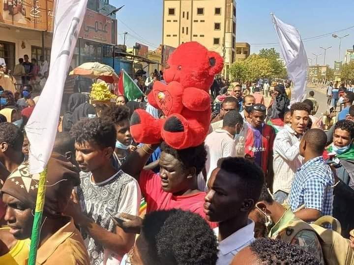 بالصور.. متظاهرون يحملون “دبابيب عيد الحب” على رؤوسهم في مشاهد طريفة بالخرطوم