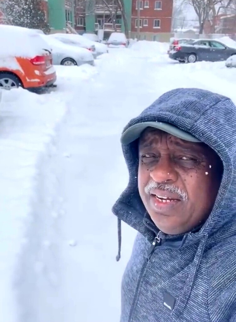 وثق الكوميديان السوداني الشهير “جمال عبدالرحمن” مقطع فيديو، طريف له، وهو يغوص في ثلوج كندا، وسط أجواء باردة وصلت فيها درجات الحرارة تحت الصفر.