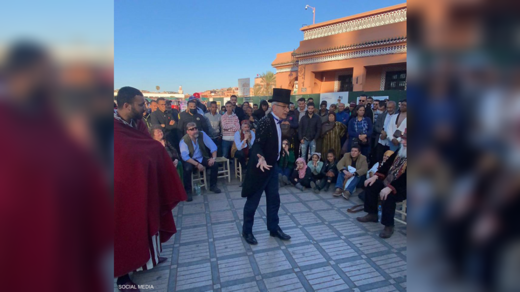 لفت سفير بريطانيا في المغرب، سايمون مارتن، الأنظار بشوارع مدينة مراكش، مؤخراً، عندما تقمص دور حكواتي وسط ساحة “جامع الفنا” الشهيرة.