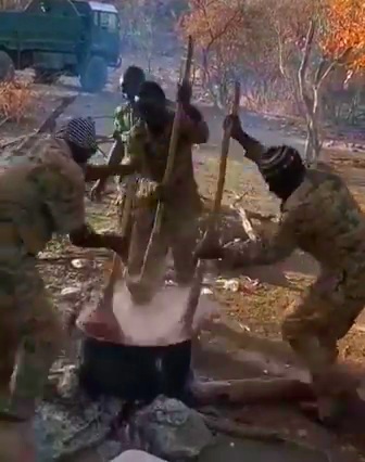 وأظهر المقطع ثلاث جنود سودانيين يحضرون عصيدة “الكوجة” لزملائهم، وسط حماس وهتاف المارشات العسكرية المنتظمة، في مشهد حظي بإعجاب منصات التواصل.