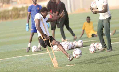بعزيمة كبيرة وبرجل واحدة وعصا خشبية يتخطى رمضان ليسجل الأهداف في المرمى وفي شباك الإعاقة التي لم تنل من عزيمته شيئاً.