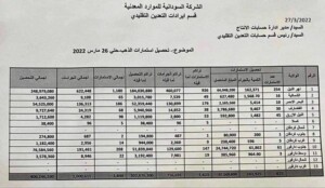 وكانت إجراءات الإحاطة والسيطرة ومراقبة حركة الذهب المنتج خلال شهر فبراير 2022م بلغت (425) كيلو جرام وحقّقت الدولة بحسب صحيفة الصيحة، إيرادات مباشرة كعوائد جليلة عن هذه الكميات عبر الاستمارة بلغت (170) مليون جنيه.