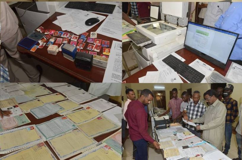 وبحسب ( المكتب الصحفي للشرطة) فقد توفرت معلومة للشرطة الأمنية بضبط شهادة سودانية مزورة للتوثيق على إثرها تمكن فريق الشرطة الأمنية بوزارة التربية والتعليم إدارة الامتحانات من ضبط حامل الشهادة وبالتحري معه أرشد إلى الشخص الذي استخرجها له وتوالت الشهادات المزورة، وكانت كل المعلومات تشير إلى نفس الشخص، فتم تكوين فريق من عدد ٢ضباط و١٢فرداً وتم جمع معلومات ووضع خطة محكمة للايقاع به تحت إشراف مدير الدائرة وبموجب أمر تفتيش صادر من نيابة الجرائم الموجهة ضد الدولة تم تفتيش المنزل بحضور شهود عيان. وأسفر التفتيش عن ضبط عدد (١) ماكينة اسكنر وشاشة وماكينة تصوير وجهاز حاسوب بملحقاته اضافة لشهادات ميلاد سودانية وشهادت جامعية وشهادات معلمين قادمين من دولة حدودية تم فتح بلاغ بنيابة الجرائم الموجهة ضد الدولة تحت المواد( ٣١..١٢٣) من القانون الجنائي