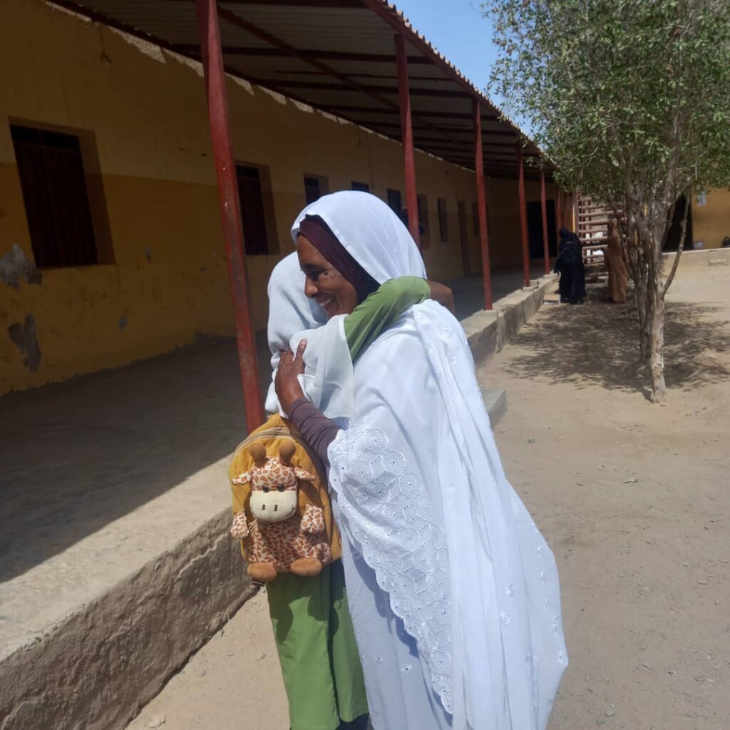 وظهرت التلميذة وهي فرحة تحتضن معلمتها الأستاذة نعمات ككراب، بمدرسة المعلم الخاصة بمدينة بورتسودان، في مشهد مؤثر لاقى تفاعلاً في أوساط رواد التواصل الاجتماعي.