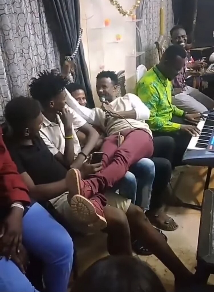 فاجأ الفنان الشباب “صلاح ولي” بعض الحضور بحفلته بالاستلقاء على أرجلهم، والتمدد عليها وهم جلوس في مشهد غريب.