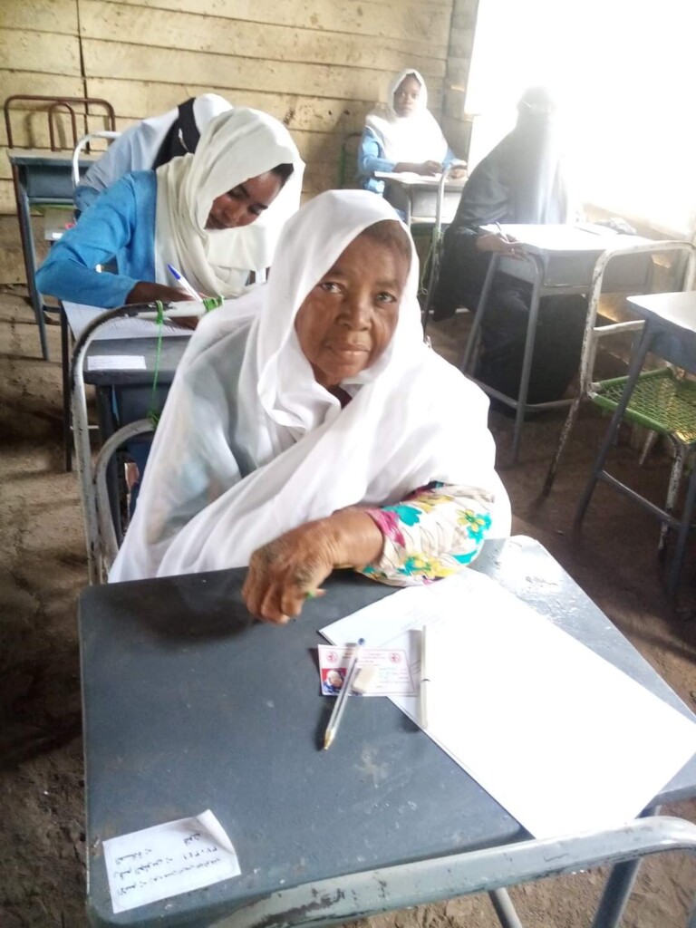 جلست سيدة سبعينية لامتحانات الشهادة الثانوية بمركز مدرسة النهضة الثانوية للبنات في ولاية القضارف – بحسب ما نشرته وزارة التربية بالقضارف وفق صحيفة السوداني