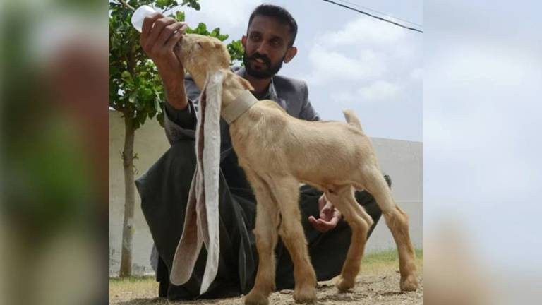 ولد الماعز الصغير سيمبا في باكستان بأذنين يبلغ طولهما (48) سم، بما يؤهله لدخول موسوعة (غينيس) للأرقام القياسية، خاصةً أن أذنيه طويلتان جداً، لدرجة أنه يجرهما على الأرض أثناء سيره.