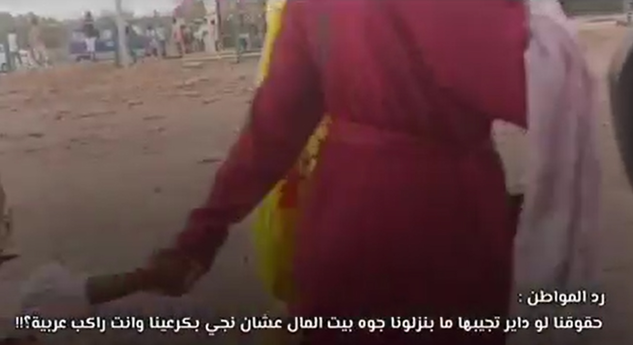 وفي المقطع المتداول على شبكات التواصل الاجتماعي والذي تم رصده بواسطة “كوش نيوز”، تظهر في الفيديو مشاهد من أحد أحياء أمدرمان العريقة، حيث يتحدث شخص لتبرير إغلاق وتتريس الشارع قائلاً: ” معليش يا جماعة دا عشان نجيب حقوقكم”، ليتفاجأ برد مواطنة بطريقة غاضبة: “حقوقنا لو داير تجيبا ما بنزلونا جوة بيت المال عشان نجي بكرعينا وانت راكب عربية”.