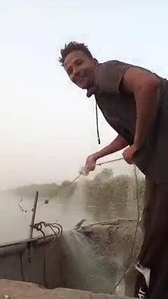 وثق مقطع فيديو مشهد رائع لصياد سوداني، بأحد أرياف السودان، يستعرض أول نتاج صيده في الصباح من الأسماك.