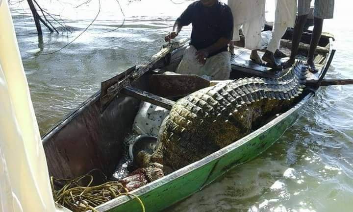 شاهد بالصور.. مواطن سوداني يصطاد تمساحاً ضخماً يزيد طوله عن 4 أمتار أرعب السكان بأرقي شمالي السودان