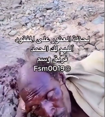 وقام فريق وسم للبحث والإنقاذ بنشر مقطع فيديو على حسابه الرسمي في “تويتر” يوثق لحظات العثور عليه، وقال أحد أعضاء الفريق إنه تم العثور عليه بعد عمليات بحث تمت أكثر من 24 ساعة، داعيا لكل من ساهم في عمليات البحث والإنقاذ بالأجر والثواب.
