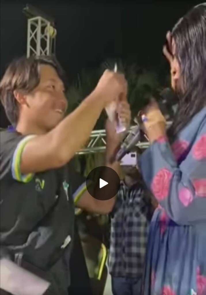 وخطف أحدهم الأضواء بعد أن أخرج كمية من المال من حقيبته الخاصة, ليقوم برميها على الفنانة بعد لحظات من تعلمه طريقة النقطة الشهيرة في السودان.