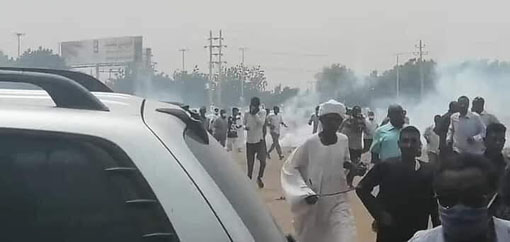 واجهت السلطات أمس موكب ١٧ سبتمبر في بحري بقمع مفرط استخدمت فيه الرصاص المطاطي وقنابل الغاز .
