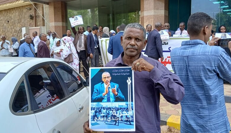 الحرية لوجدي صالح.. بالصور من أمام مقر لجنة تفكيك نظام الثلاثين من يونيو ١٩٨٩ واسترداد الأموال العامة ..