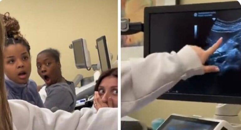 وأبان الفيديو إجراء أشعة سونار لإحدى الممرضات ، وتبين أنها حامل بالصدفة ما أثار دهشة زميلاتها.