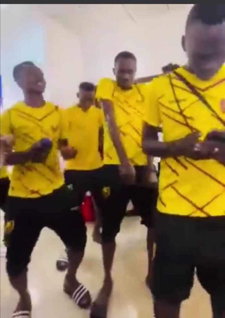 وظهر بعض لاعبو الأحمر وهم يقدمون فواصل من الرقص الأفريقي فرحة ببلوغ دور المجموعات على الرغم من خساراتهم المباراة بثلاثة أهداف مقابل هدف واحد.