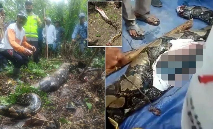 نشرت صحيفة( الديلي ميل) البريطانية، صورا مروعة لثعبان ابتلع امرأة تبلغ من العمر( 54) عاما في إندونيسيا.