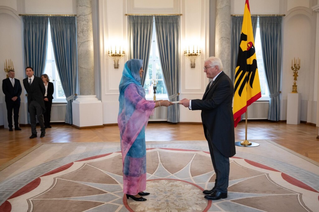 قدّمت السفيرة إلهام إبراهيم محمد أحمد ، أوراق إعتمادها سفيرا فوق العادة و مفوضا لجمهورية السودان لدي جمهورية ألمانيا الإتحادية الي الرئيس الألماني فرانك فالتر – شتاينماير .