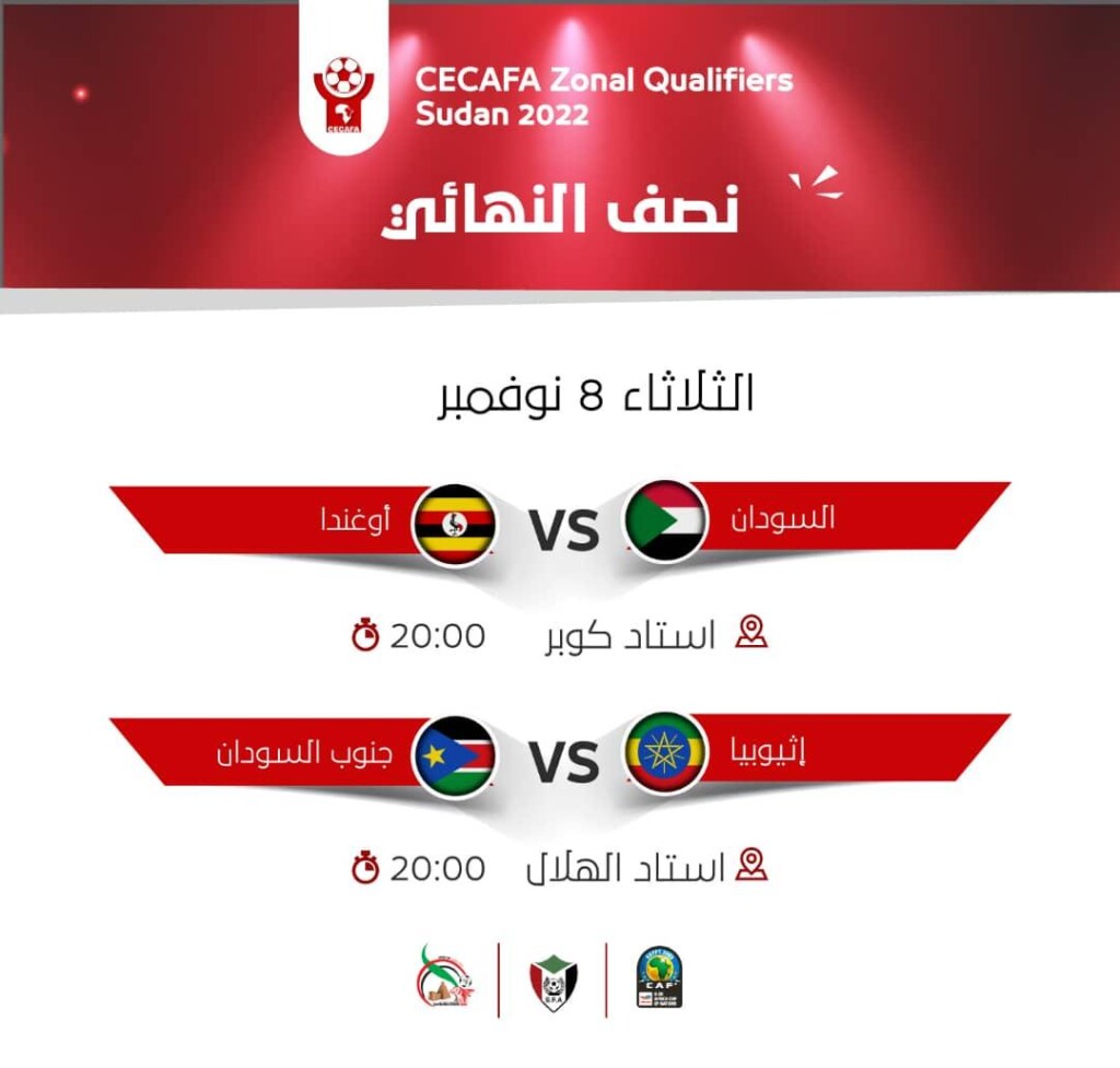 ينطلق في الثامنة من مساء اليوم نصف نهائي تصفيات سيكافا للشباب التي تنظمها السودان ، وذلك على ملعبي كوبر و الجوهرة الزرقاء .