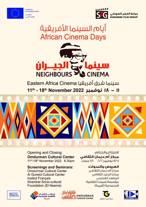 تنطلق مساء الجمعة بمركز ام درمان الثقافي تظاهرة أيام السينما الأفريقية والتي تنظمها جماعة الفيلم السوداني ونادي السينما السوداني بالتعاون مع مركز ام درمان الثقافي، مؤسسة شمبات الثقافية الاجتماعية (النيمة)، مركز الجنيد الثقافي، المعهد الفرنسي.