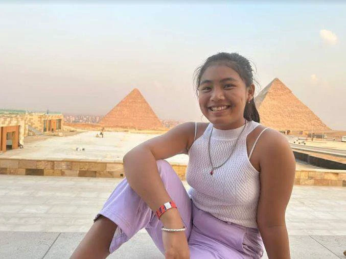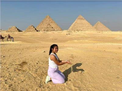 شاهد بالصور : أصغر ناشطة مناخ في العالم تزور الأهرامات