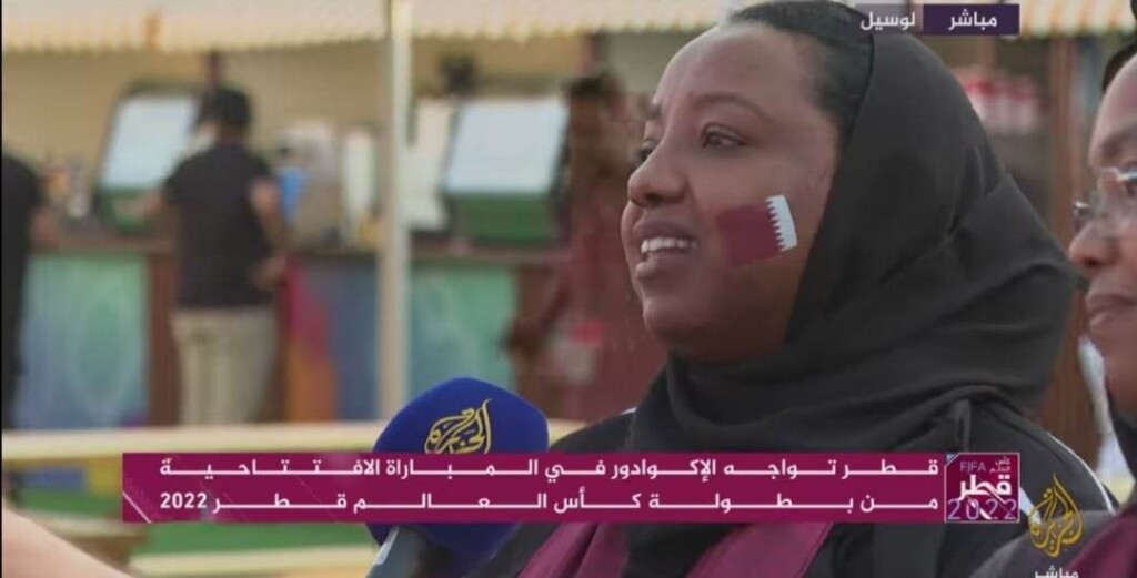 ذرفت سودانية مقيمة في دولة قطر مع أسرتها منذ 37 عاما الدموع أثناء استضافتها على قناة الجزيرة القطرية للحديث عن الأجواء قبل انطلاق المونديال.