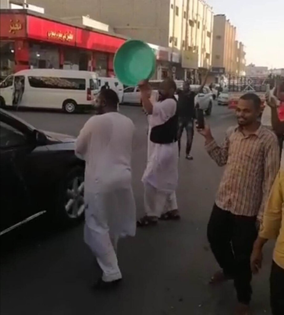 المقطع الجديد تم تصويره من العاصمة السعودية الرياض وأظهر مقيمون سودانيون وهم يحتفلون أيضاً بفوز المنتخب السعودي عبر الغناء باسم السعودية وهم يرقصون ويحملون في أياديهم (مواعين) يضربون عليها.