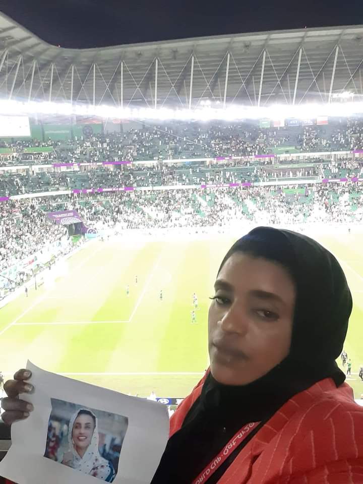تداول رواد مواقع التواصل الإجتماعي صورة الشهيدة “ست النفور” وهي من داخل إستاد المدينة في كأس العالم .