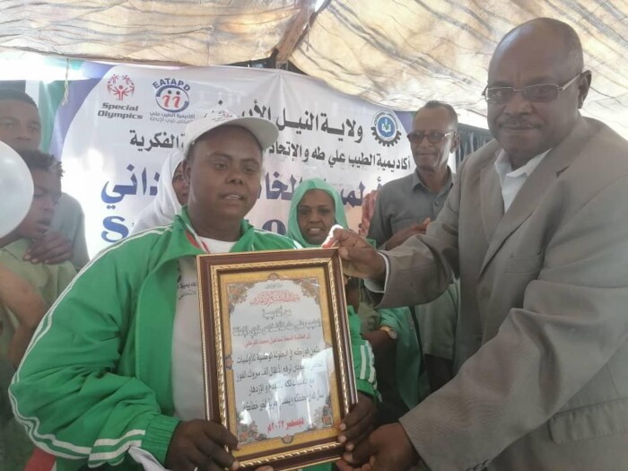 نظمت أكاديمية الطيب على طه للأشخاص ذوي الإعاقة بولاية النيل الأبيض بالتعاون والتنسيق مع الاتحاد الولائي لللإعاقة الفكرية وبمناسبة اليوم العالمي لللإعاقة نظمت حفل تكريم لابطال النيل الأبيض الفائزين في البطولة الوطنية للأولمبياد الخاص السوداني لرفع الأثقال والسباحة لذوي الإعاقة الفكرية التي اقيمت فعالياتها بنادي النيل العالمي بالخرطوم تحت شعار (دعني أفوز وان لم أستطع دعني أكون شجاعا) ، الحائزين على الميداليات الذهبية والبرونزية.