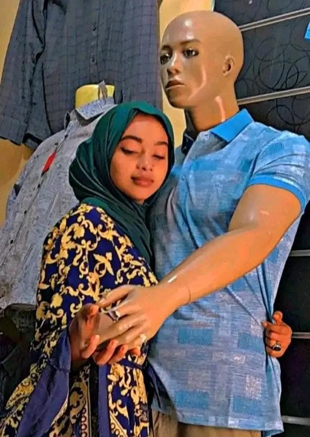 شاهد بالصور.. بعد أن تخيلتها فارس أحلامها.. فتاة سودانية تثير ضجة واسعة بعد احتضانها “دمية” بأحد محلات الملابس الرجالية وساخرون: (البورة لا دين لها)