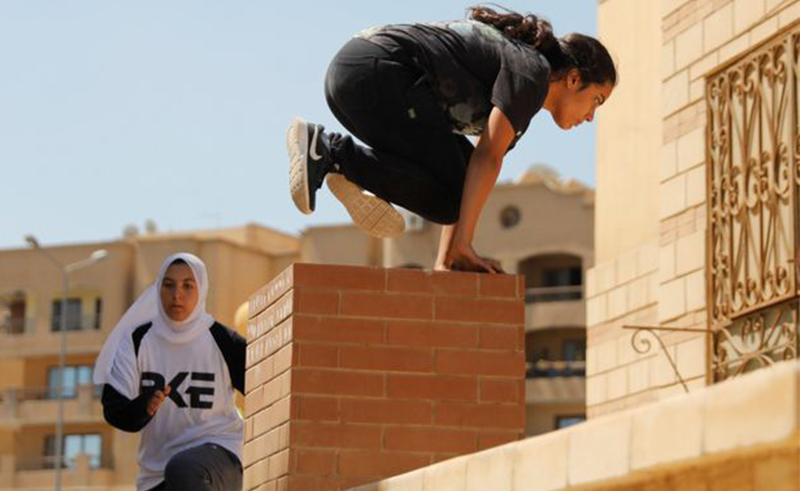 وقالت في حديثها أنها قامت بتسلق حائط بلغ طولة حوالي 3 أمتار وهي ترتدي (إسكيرت) وذلك لحظة مداهمتهم من قبل قوات الشرطة.