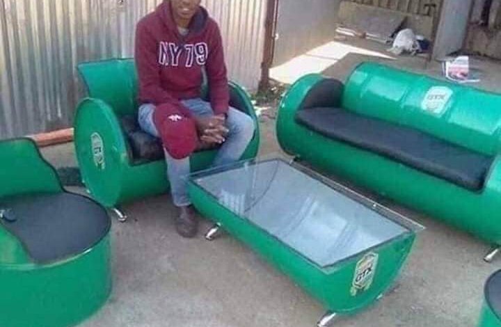 نشرت صفحة بلاد النور على الفيس بوك صورة لشاب سوداني وقالت انه يبتكر من البراميل أثاث منزلي بطريقة جميلة لاعادة تدوير المخلفات ..