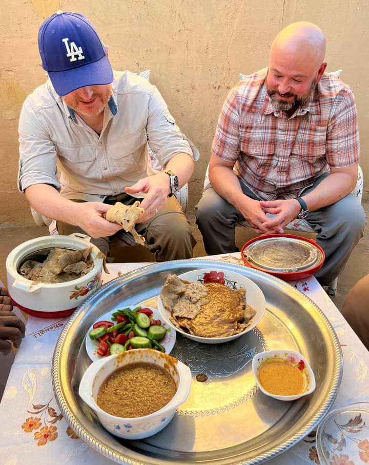 تناول السفير الأمريكي بالسودان، جون غودفري، اليوم، الطعام مع إحدى الأسر السودانية في كريمة بالولاية الشمالية.