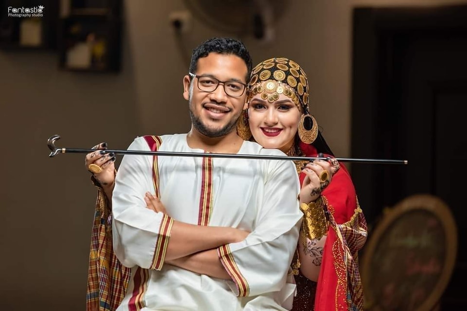 وظهرت العروس صاحبة الجنسية والأصول التركية وهي ترتدي الزي السوداني الذي ترتديه العروس في ليلة فرحها وتحديداً أثناء مراسم الجرتق.