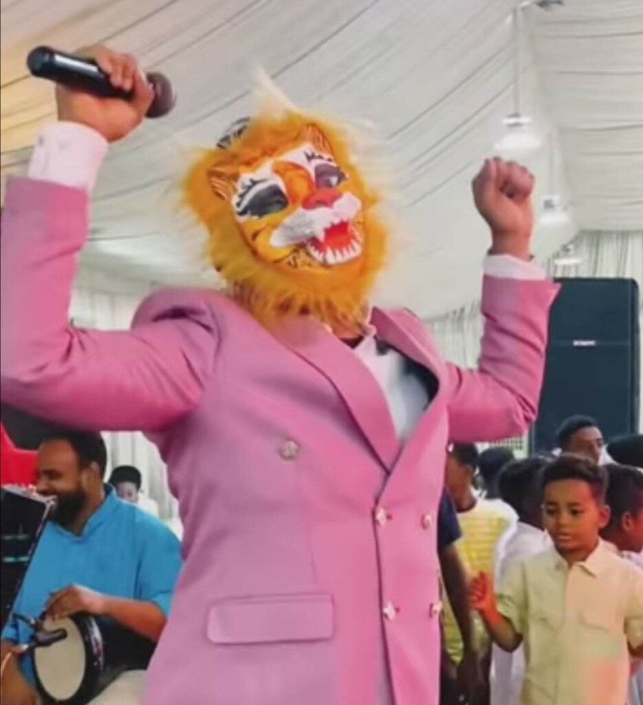 وبحسب ما شاهدت محررة موقع النيلين فقد رصدت كاميرا أحد الحاضرين الفنان الشاب وهو يغني أعلى المسرح مرتدياً قناع “النمر المقنع” الذي يرتديه الأطفال الذين حاصروه.
