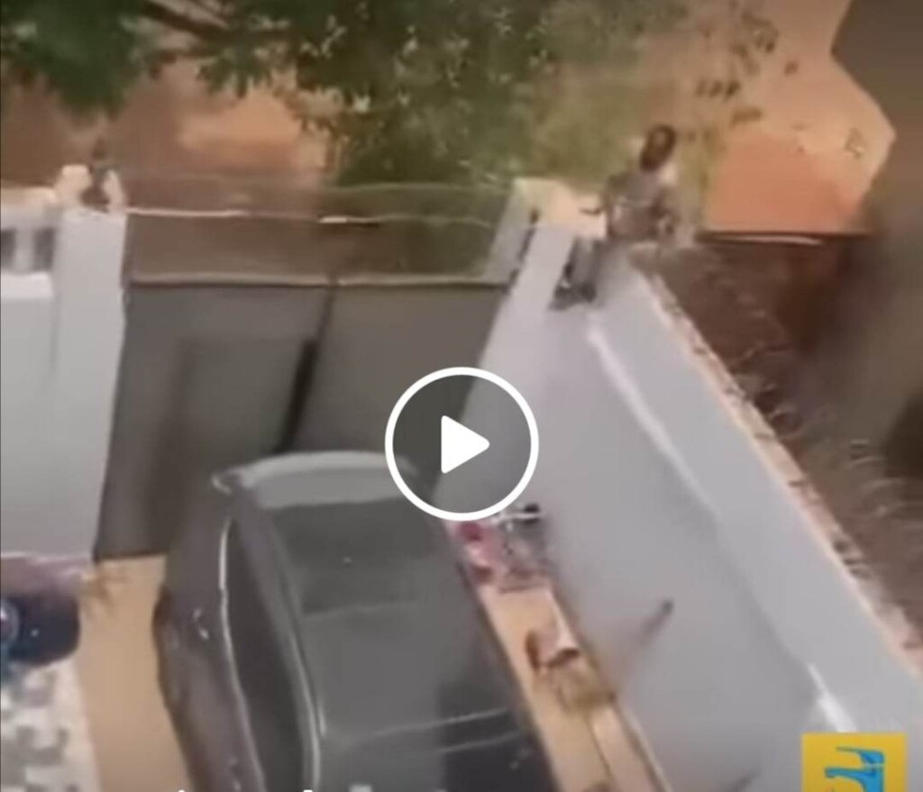 رصد ناشط على موقع التواصل الاجتماعي فيسبوك لحظة تسلق أحد أفراد قوات الدعم السريع لحائط منزلهم محاولاً دخول المنزل.