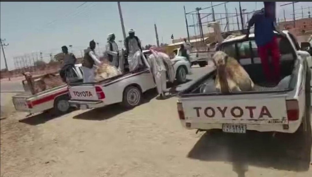 وبحسب ما شاهد محرر موقع النيلين فقد قام مواطنون بإحدى المناطق السودانية بإكرام جنود بالقوات المسلحة بالمئات من الإبل حملوها لهم في سياراتهم الخاصة.