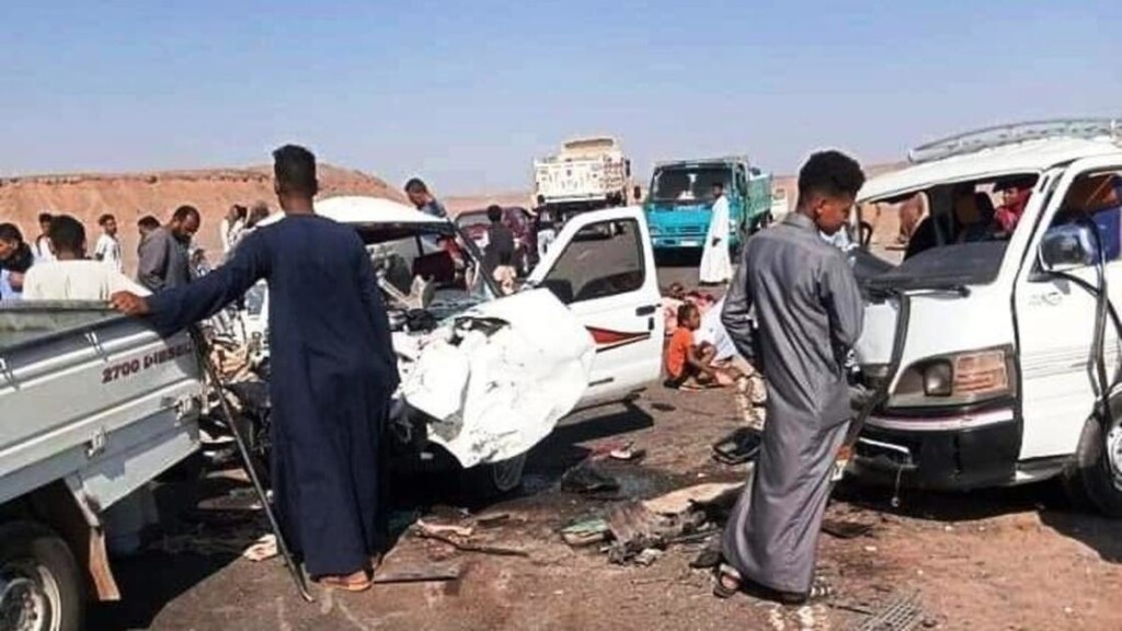 وتلقت السلطات المصرية بلاغاً بوقوع حادث تصادم بين سيارتين بطريق إدفو- مرسى علم بأسوان، ما أدى لسقوط قتلى وجرحى.